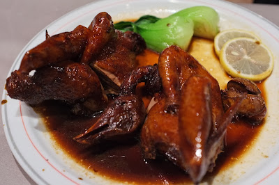 When I was a kid, I often came across this name on TV commercial. Later on, on my first trip to Macau, I was brought to this place but it wasn't that pricey back then. It's about HK$100-150 per head. At this recent visit, just their signature dish pigeon. It's HK$148 (vs. HK$48 in those mid-level restaurant). In general, I really don't appreciate most of the Macau food among all the Cantonese neighbouring cities. The service is also very arrogant. Besides the pigeon, I got their fried rice with Mackerel fish chunks (HK$128) (this one is a bit better) and the cabbage soaked in chicken stock (HK$98). The cabbage wasn't soaked in chicken stock, but just bland water. The waiter kept pushing us to pour the olive oil and vinegar. Then I knew why - just to cover up. So I can forget about this place.